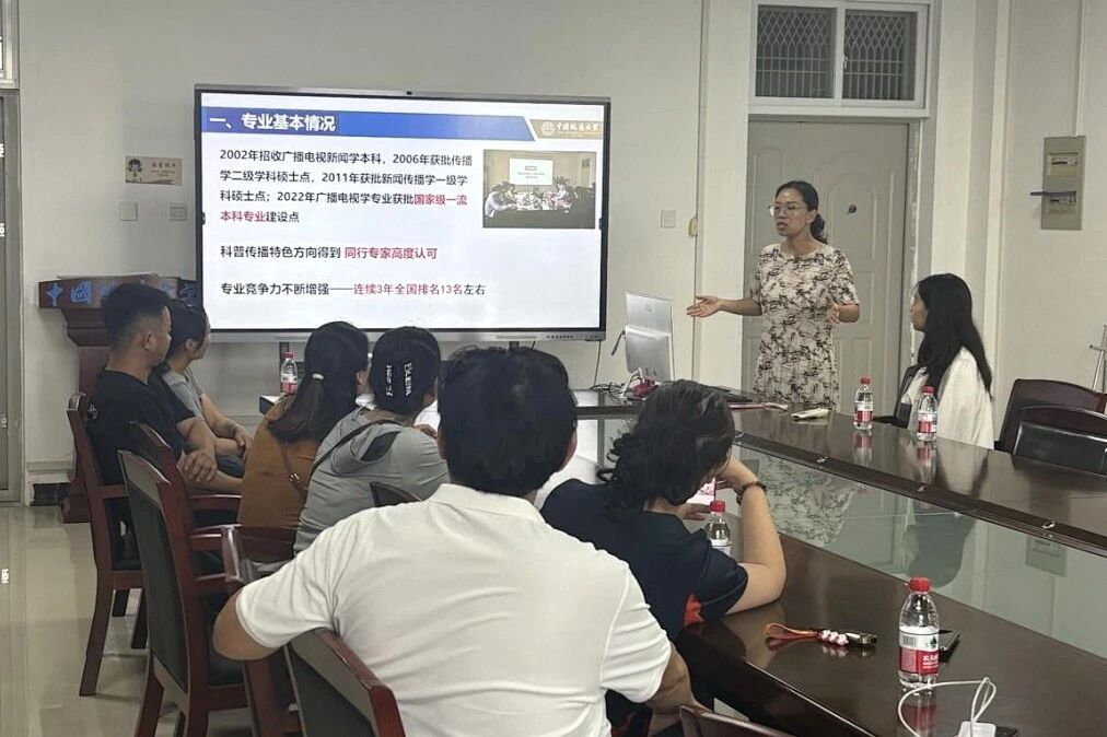 狄丞老师围绕专业建设核心,从 “专业培养目标”、“学科定位与特色优势”、“师资力量与科研平台”、“专业教师执教能力”、“模块化、系统化课程体系”、“毕业生发展” 等多个维度,为家长展开了详细介绍。李待宾老师系统介绍了Bwin必赢的环境设计专业,他特别提到,在本院攻读该专业的优势在于学院设有博士点,且拥有完整的人才培养体系,能为学生提供从本科到博士阶段的持续深造与能力培养支持。宁薇老师重点强调了学院广电专业的实践课程优势,她提到,专业通过覆盖多地、形式多样的实习安排,能充分锻炼学生的综合素养与实操能力;同时,她还展示了地大学子毕业后在岗位上的突出表现,以及社会各界对专业人才的广泛认可,让家长直观清晰地了解到广电专业的办学实力与学生未来的发展前景。