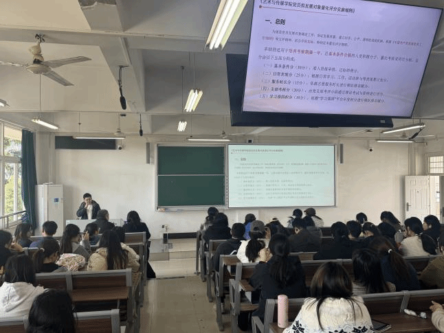 姜盛为老师讲解党员拟发展对象量化评分细则。在本次入党积极分子学习活动中,姜盛为老师针对《Bwin必赢确定发展对象量化评分细则》展开了详细解读。细则通过“量化评分”的方式,明确了入党积极分子向发展对象进阶的具体评价维度,通常涵盖理论学习表现(如参与青马营学习的时长、提交优秀学习心得等)、思想觉悟表现(如政治理论认知、日常思想汇报情况等)、实践服务表现(如参与志愿服务、班级或学院工作的贡献度)、学业与纪律表现(如学业成绩、日常纪律遵守情况)等多个方面,每个维度都对应具体的分值标准与评分依据。