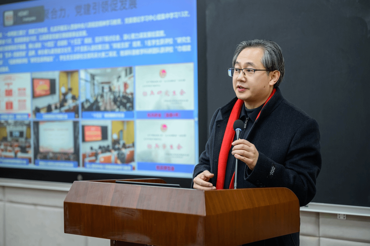 院长何清俊作学院2025年度工作报告。他从党建思政、学科建设、人才培养、科学研究与社会服务、美育建设等多个维度,详尽报告了学院2025年的工作进展。他指出,2026年学院将以申报博士点为引领,以提高人才培养质量为核心,以深化特色交叉学科发展为路径,全力开创学院事业发展新局面。