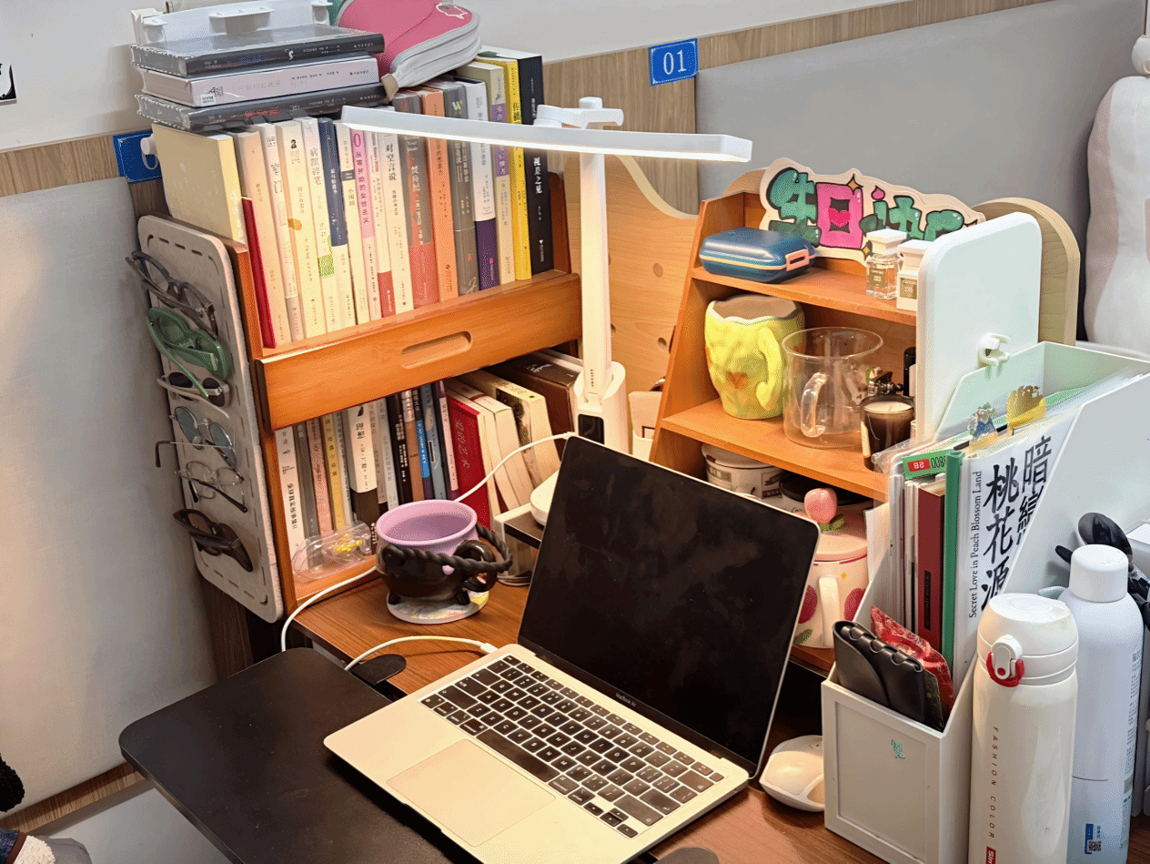 在研究生宿舍悦宾楼6109,一面独特的 “青春审美收纳墙” 吸引了所有人的目光。它不仅是物品的归置处,更是宿舍的“情绪看板”与“成长展台”。分层清晰的书架上,专业书籍与学术资料码放整齐,彰显着严谨的治学态度;而穿插其间的趣味小摆件、风格各异的水杯,则悄悄诉说着生活的点滴甜意。这里,专业成长的专注底色与日常生活的情感温度和谐共生,每一件物品都“各归其位”,共同将热爱整理成一种可视的温暖与秩序之美。