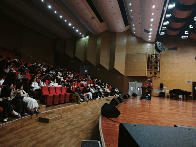 12月4日下午3:30,2025-2026学年“弘艺班”学生骨干培训第三期“日常急救知识科普”专题培训在北区音乐厅顺利举行。本次培训特邀校医院刘欣医生主讲,面向弘艺班学生骨干开展,旨在提升学生应对突发状况的急救能力,增强校园安全意识和自救互救技能。